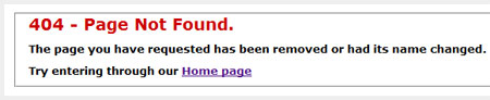 "404 - Page Not Found" is the error page displayed whenever someone requests a page that’s simply not available on your site.  The reason for getting a 404 error could be a URL mistype, bad link on your site, page that was removed or renamed, etc.  Since there is no web page found to display, the web server shows the friendly Page Not Found message.  The default 404 error page is shown below.