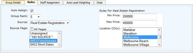Source: Allows you to select the type of pages you would like to see in the "Source Page" select list below. Note, if you select "External" or "Real Estate Registration", you can specify additional rules as needed on the right side of the screen (ie: Rules For Real Estate Registration / Rules For External).