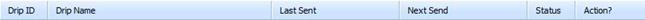- Drip Row has a “Status” of Active and a “Next Send” date sometime in the future. This is an active drip that is scheduled to be sent in the future.